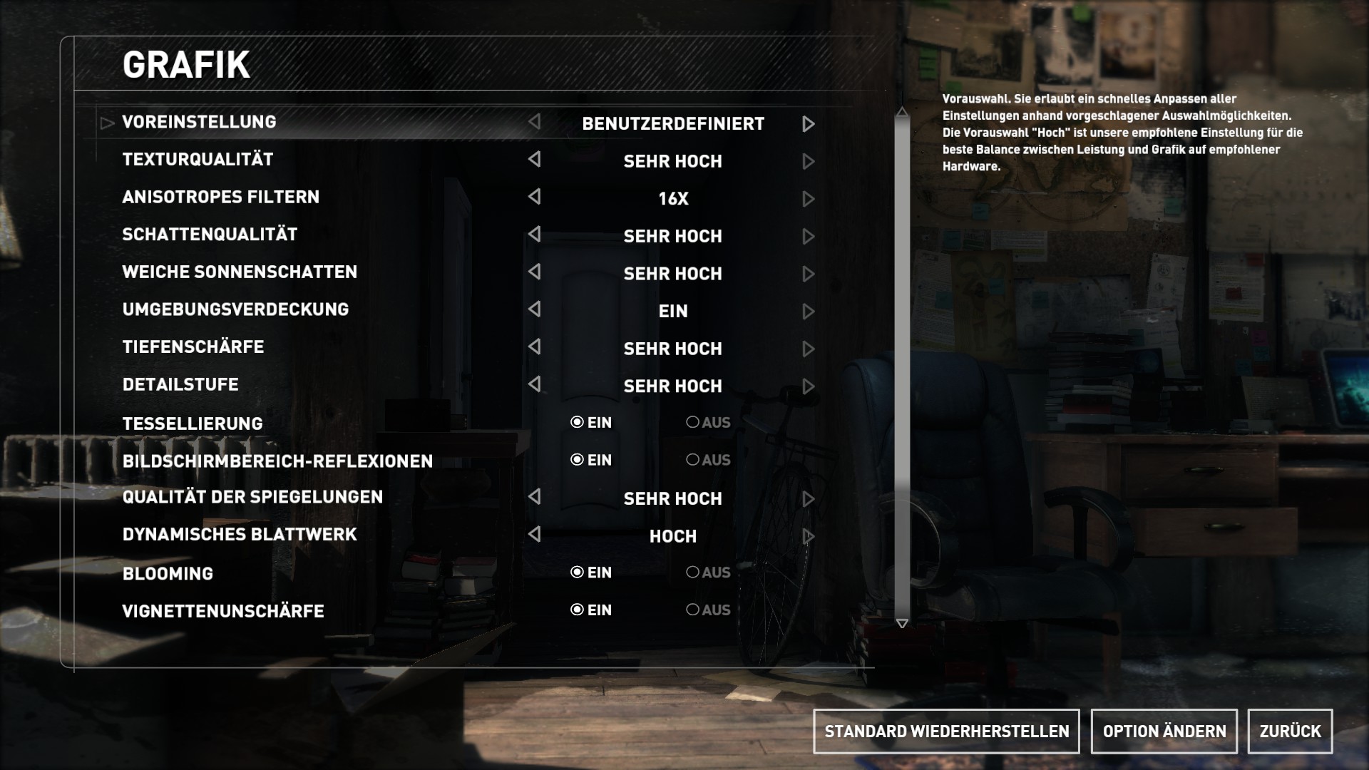 - Detailstufe: Sehr Hoch (Max. Details & SMAA)