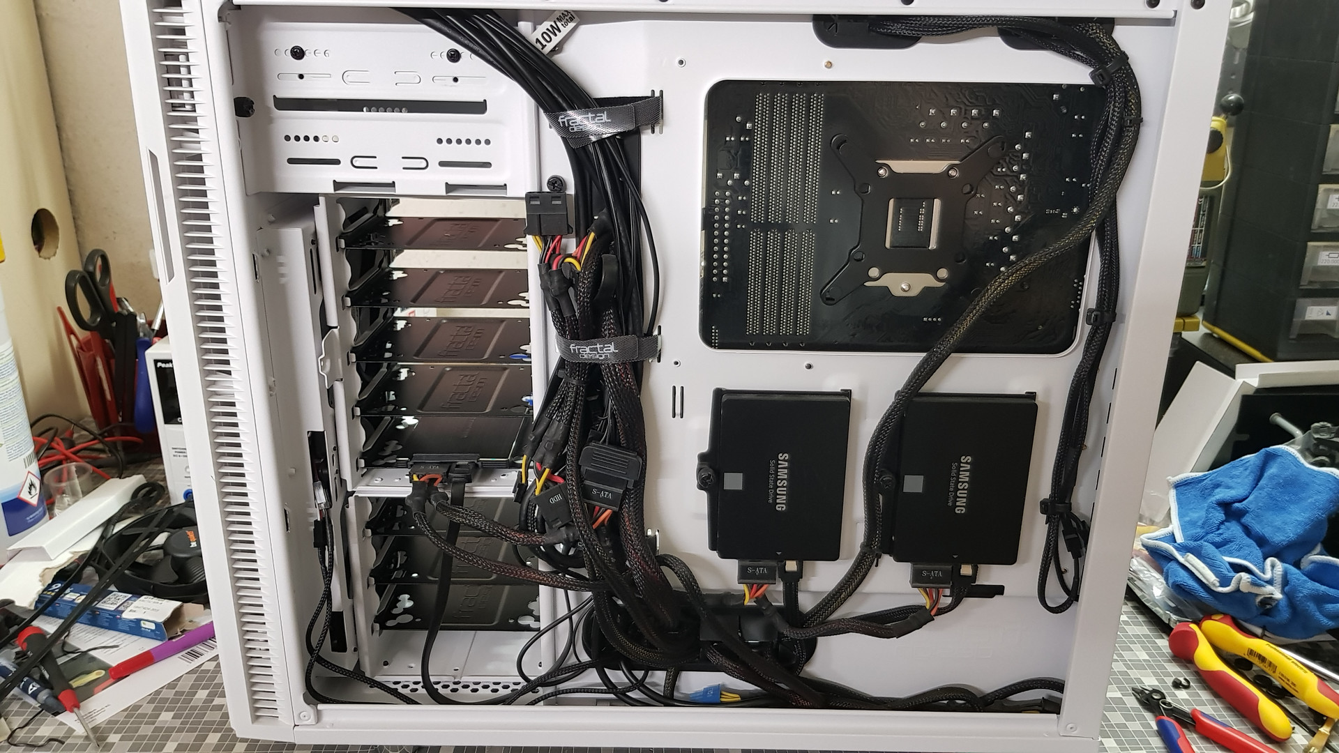 Lüfterplätze: | Insg. 9 (120/140 mm) Oben: 3 – 2x Noiseblocker NB-eLoop B14-3 140 mm installiert Unten: 2 – 1x Noiseblocker NB-eLoop B14-3 140 mm installiert (deaktiviert) Vorne: 2 – 2x Noiseblocker NB-eLoop B14-3 140 mm installiert Hinten: 1 Seite: 1 |