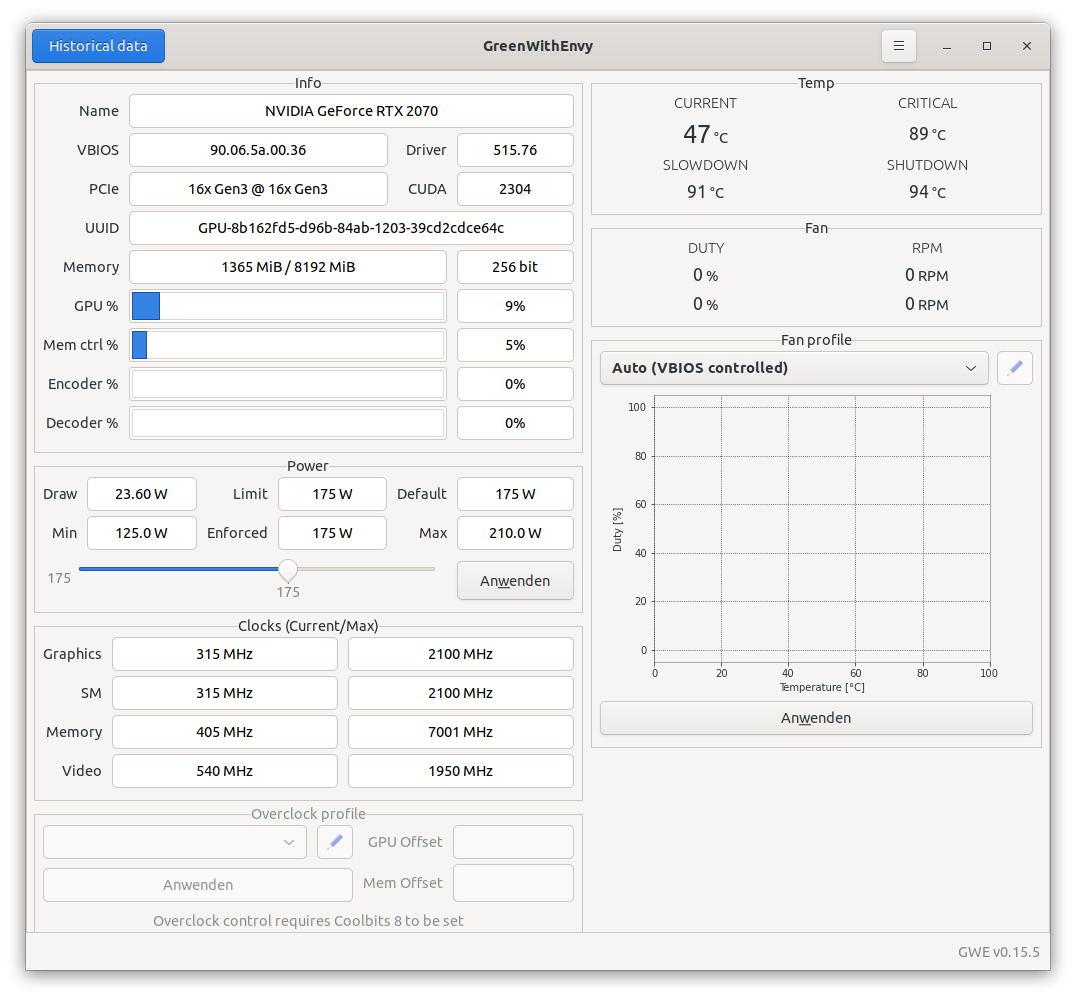 Temperaturen: | Leerlauf: 45°C Last: 69°C |