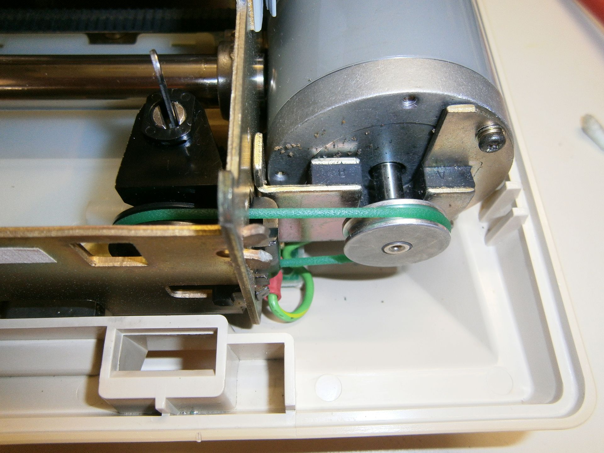 Und zum Schluss, hab ich dem Farbbandantrieb einen neuen Riemen spendiert! War etwas knifflig, da die richtige Größe rauszufinden, denn im Servicehandbuch stand nichts und NEC Japan hatte sich bei NEC Deutschland nicht mehr gerührt (hatte dort angefragt). Also musste ich mit Hilfe anderer den Riemen genau berechnen.